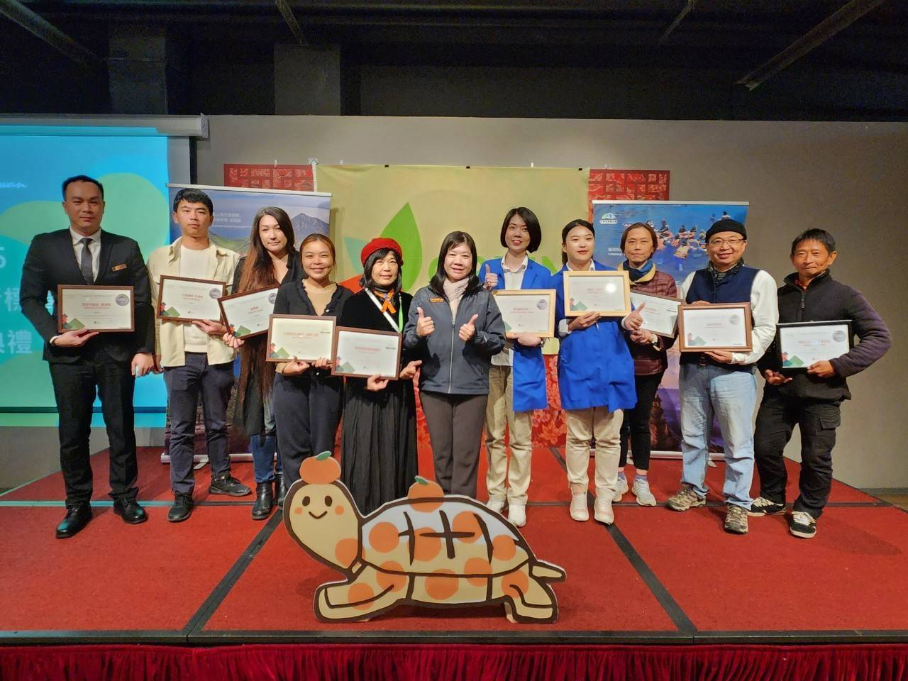 東北角及宜蘭海岸國家風景區管理處推動永續觀光,今年度新增5個業者取得GTS綠色旅行標章,19日在國立傳統藝術中心宜蘭園區煙波花時間滿饌樓,進行綠色旅行標章說明會及114年標章授證典禮。