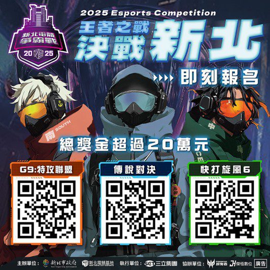 王者之戰,決戰新北!新北市年度指標性賽事「2025新北電競爭霸戰」即日起熱血開放報名!今(114)年度賽事不僅延續熱門遊戲《傳說對決》外,更首度納入亞洲運動會正式競技項目《快打旋風6》,吸引格鬥電競愛好者同場較勁。此外,臺灣原創遊戲《G9:特攻聯盟》也強勢回歸,並獲得遊戲發行公司昱泉國際獎金加碼,本屆三項賽事總獎金高達新臺幣20萬元,歡迎全臺年滿15歲以上的電競玩家,一同爭奪冠軍榮耀!