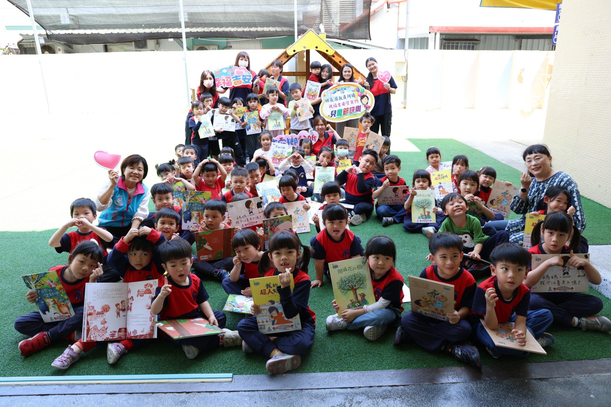 ▲小朋友收到繪本禮物,個個笑開懷。 (圖/吉安鄉公所提供,下同)