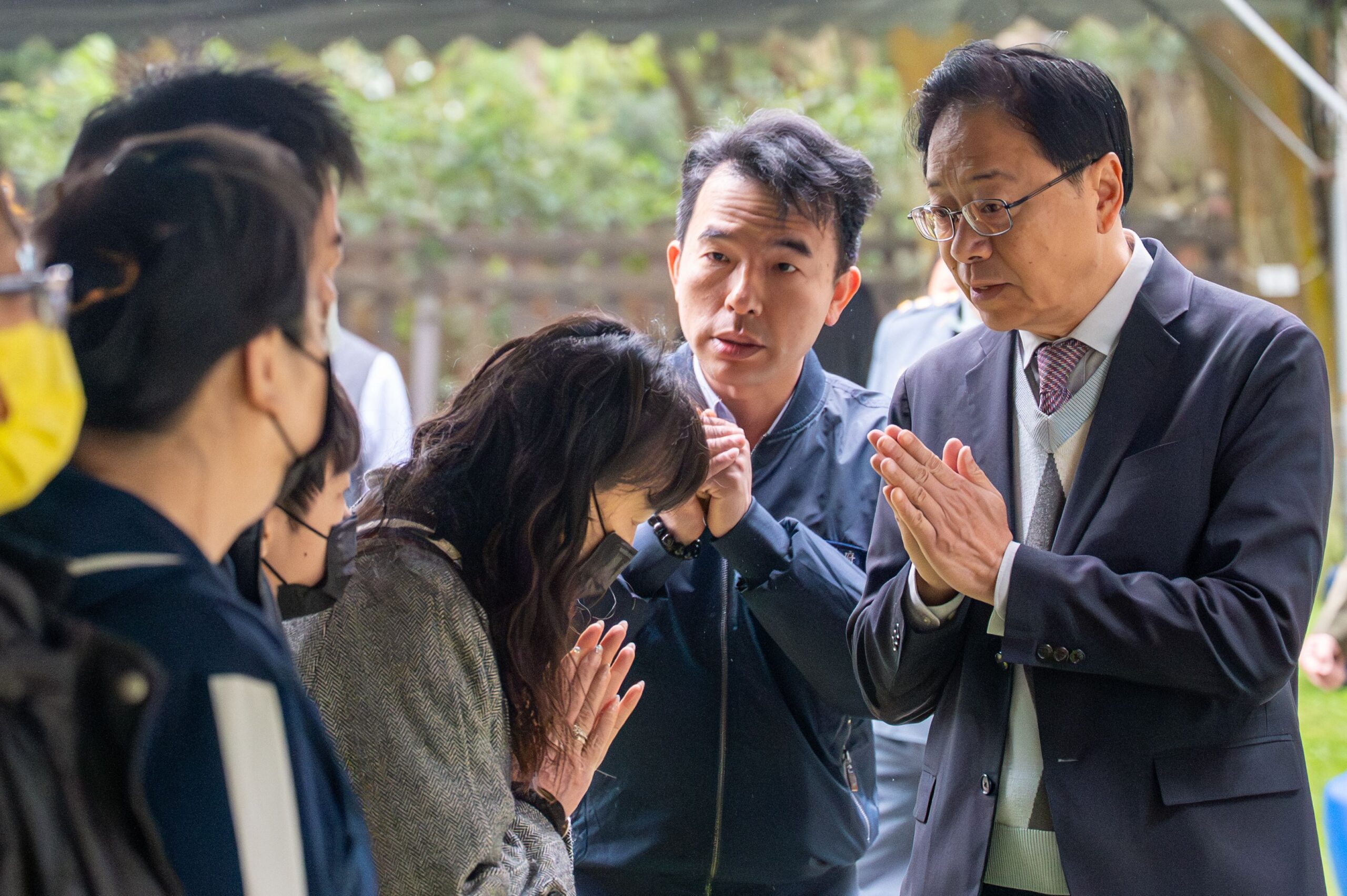 ▲張善政向遺族家屬致意。(圖/桃園市新聞處 提供)