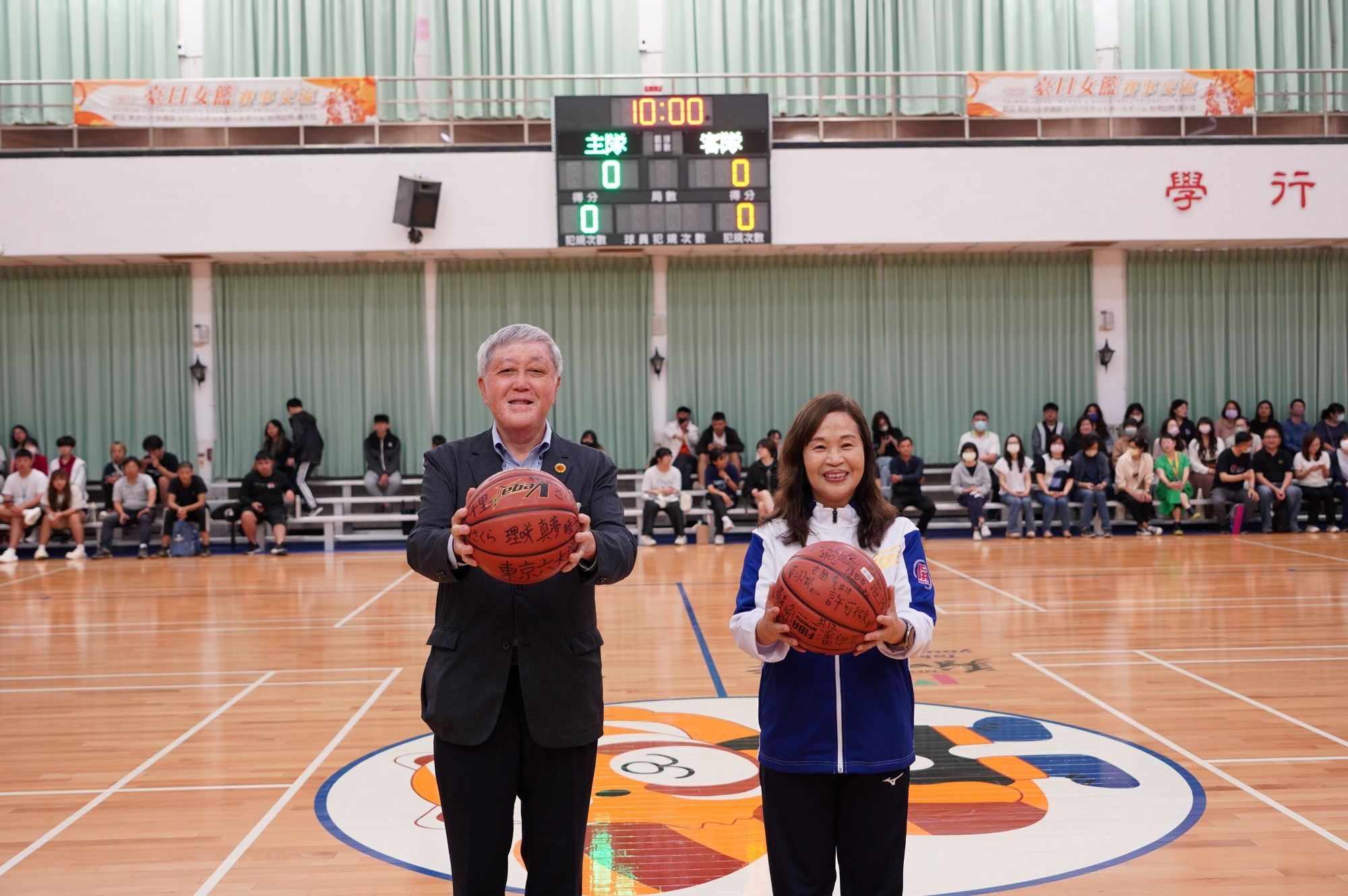 ▲東京六大學女子籃球聯盟教練工藤哲(左)與屏東縣政府教育處長楊英雪(右)以球會友(圖/屏東縣政府教育處)