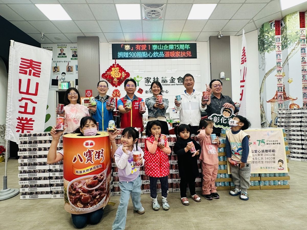 泰山企業成立75週年,在這個特殊的時刻,為落實企業社會責任,關懷弱勢家庭與兒童,並選在兒童節前夕,捐贈泰山八寶粥100箱、紫米薏仁粥100箱及燕麥奶花生300箱,共計500箱點心飲品予彰化家扶,今日(3/26)由泰山企業行銷一處鈕安澤副總,數位暨公共關係行銷經理王佳慧出席。而田中馬拉松創辦人鄭宗政理事長、彰化家扶扶幼主委辜福榮伉儷及田中區扶幼主委邱淑慧也一同出席見證,對於泰山以彰化在地企業持續回饋在地予以肯定。大家都希望藉由實際行動,幫助弱勢兒少及家庭感受到社會的溫暖,以實際型動點燃對公益的熱情,持續產生正向的循環。