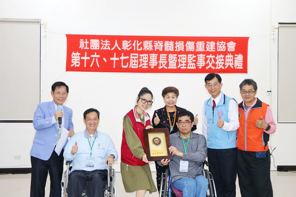 社團法人彰化縣脊髓損傷重建協會於114年03月23日(星期日)假本會「脊新家園-多功能服務中心」舉辦「第十六、十七屆理事長暨理、監事交接典禮」活動,第十七屆理事長陳乙成先生帶領全體理監事進行就任儀式,在主管機關代表與社會各界慈善團體的祝賀聲與見證下─薪火相傳。