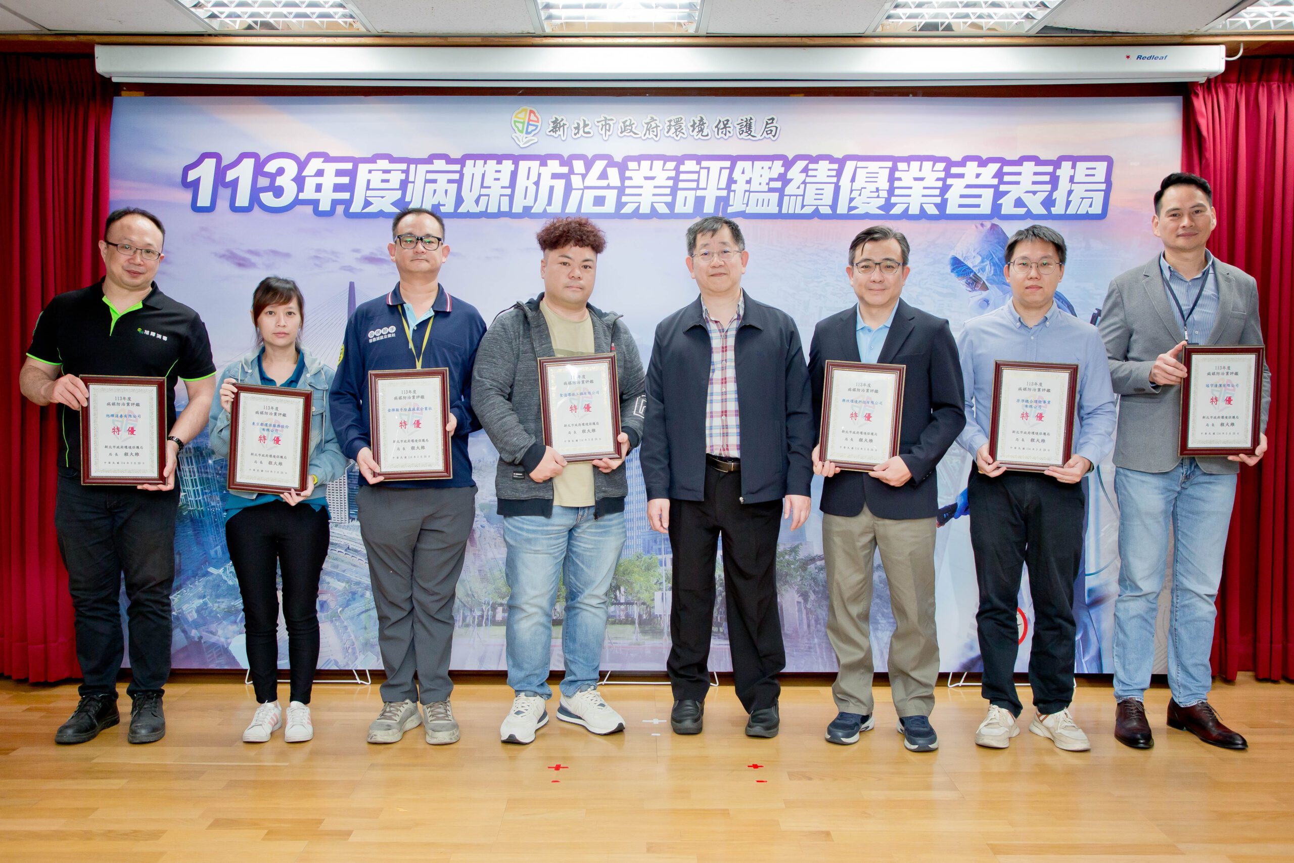 ▲新北市環保局表揚113年度病媒防治業評鑑績優業者,期許業者持續提供優質服務,共同守護市民健康。(圖/新北市環保局 提供)