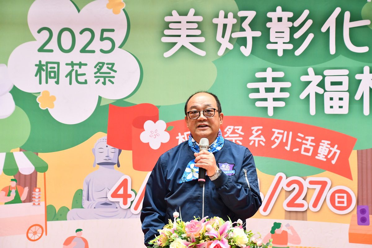 ▲副縣長周傑表示,今年彰化桐花祭從4月12日至27日在八卦山盛大舉行。(圖/記者蕭麗鳳攝)