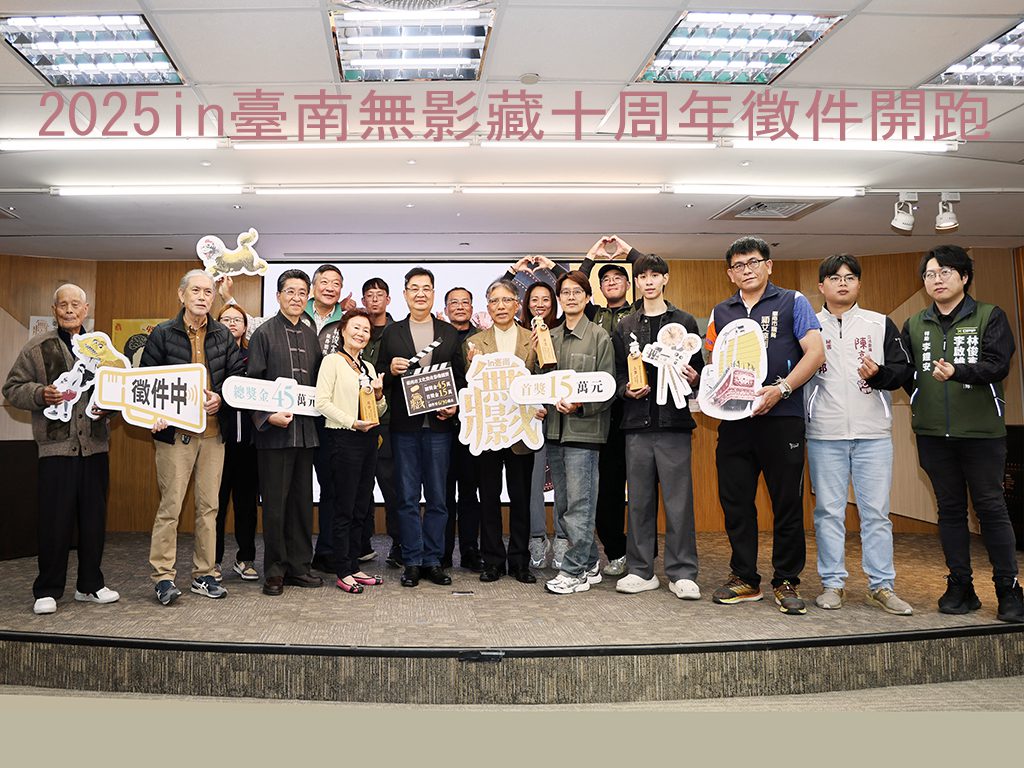 【記者吳玉惠/台南報導】 2025「in臺南‧無影藏」臺南市文化資產影像競賽正式滿十週年,邁入第六屆,今年度競賽徵件開跑,提供總獎金45萬,並由傳統木雕保存者陳啓村藝師親自設計前三名檜木獎座,鼓勵創作者透過獨特視角與創意詮釋文化故事,呈現文化資產的嶄新風貌。今(2)日記者會上,各界貴賓共同切開象徵「無影藏」10週年的蛋糕,宣告活動正式起跑,台南市議會市議員Ingay Tali穎艾達利也親自到場表達支持。文化局更特別策劃「十週年特映」活動,將放映18部歷屆得獎作品,希望激發更多影像紀錄者的創意與靈感。