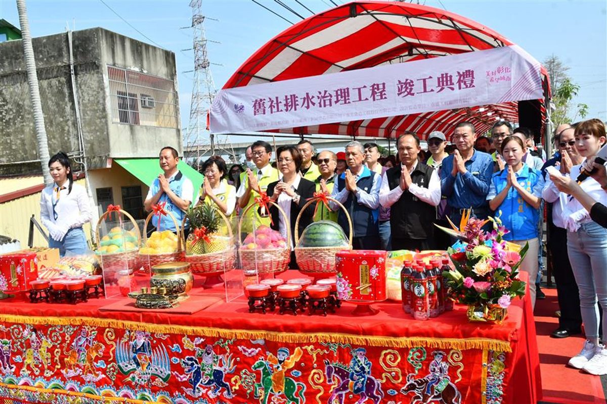 彰化社頭鄉舊社排水自107年5月底啟動提升排洪效能工程,歷經7年多的經費爭取、規劃與施工,挹注4億7,084萬6,617元,在今年1月底完成長達3.13公里渠道拓寬及堤岸加高工程,正式宣告舊社排水全線整治完工。11日上午在社頭鄉舊社排水太平橋辦理竣工典禮,縣長王惠美等人與會,此次整治不僅提升排水通洪能力,解決舊社排水上游及山腳路一帶淹水問題,同時也大幅改善沿線交通安全。王縣長說,感謝經濟部的全力支持,以及議長謝典林及所有議員們對經費的支持,中央地方不分黨派,讓彰化更進步。