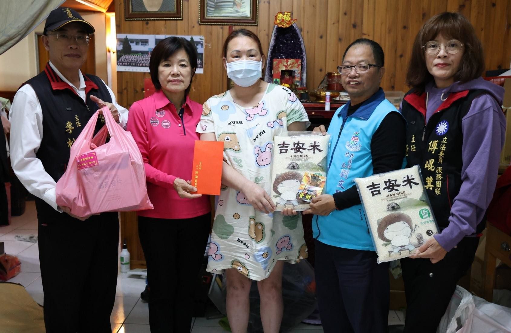 吉安鄉北昌村劉姓婦人透過社群平台求助,鄉長游淑貞獲悉後,立馬要求社會課協助,會同傅崐萁立法委員辦公室主任李松年與北昌村長劉文賢等人到宅關懷,讓劉女士感激極了。