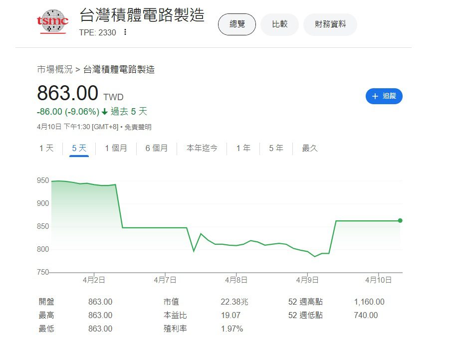 在台股的部分,因美股由黑翻紅大漲,讓連日重挫的台股今天也跟著強力反彈,終場大漲1608.27點,也改寫了台股收盤上漲的紀錄,加權指數終場收在19000.03點,創下盤中與收盤的史上最大漲點與漲幅紀錄。3大權值股同步亮燈,最後台積電終場上漲78元至863元、聯發科上漲115元至1300元、鴻海上漲11元至123.5元。