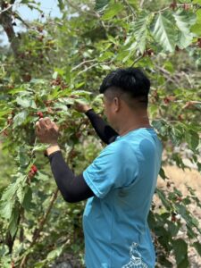 【記者范家豪/白河報導】 台南白河萬里長城園區種植桑椹已成熟城主好客 ,購票入園進來的旅客前往萬里長城徒步區,有許多成熟桑椹可以自行免費現採現吃,遊客要記住:【不可帶出場更不可打包】,留給其他遊客共同分享採桑椹的樂趣,桑椹正在萬里長城徒步區,我們工作人員會告知地點是免費摘完為止。