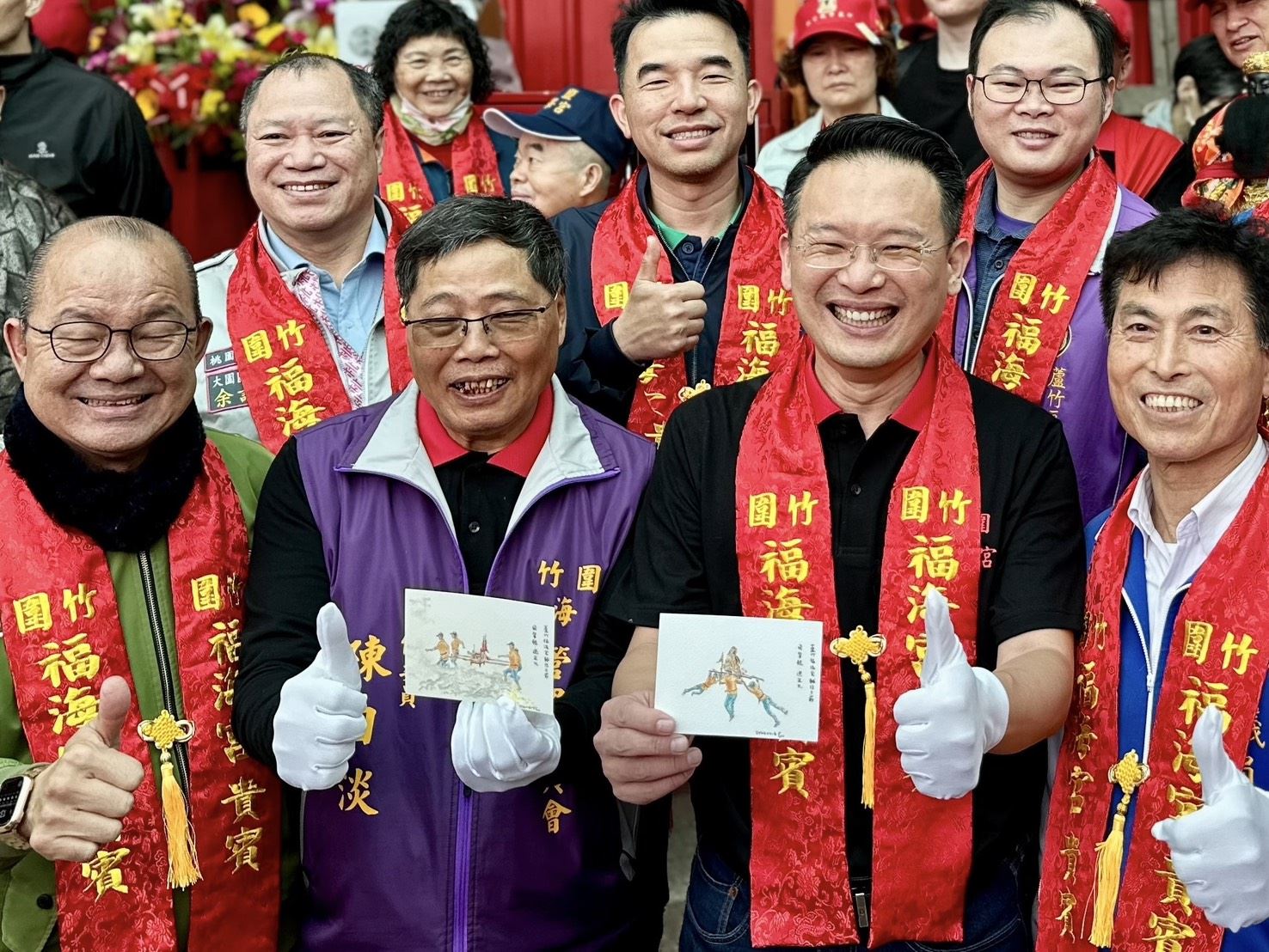 桃園市副市長蘇俊賓(5)日下午前往蘆竹區,出席「福海宮輔信王公聖誕千秋大典」時表示,竹圍福海宮創建175年,其中每年輔信王公聖誕時舉辦的飛輦轎、過金火儀式更是超過百年的歷史,他不僅親自體驗這百年傳承的飛輦轎儀式,也將先前親手繪製的飛輦轎、過金火圖卡贈予福海宮陳日淡主委。他強調,這場不僅是宗教活動,也肩負歷史文化傳承的重要使命。