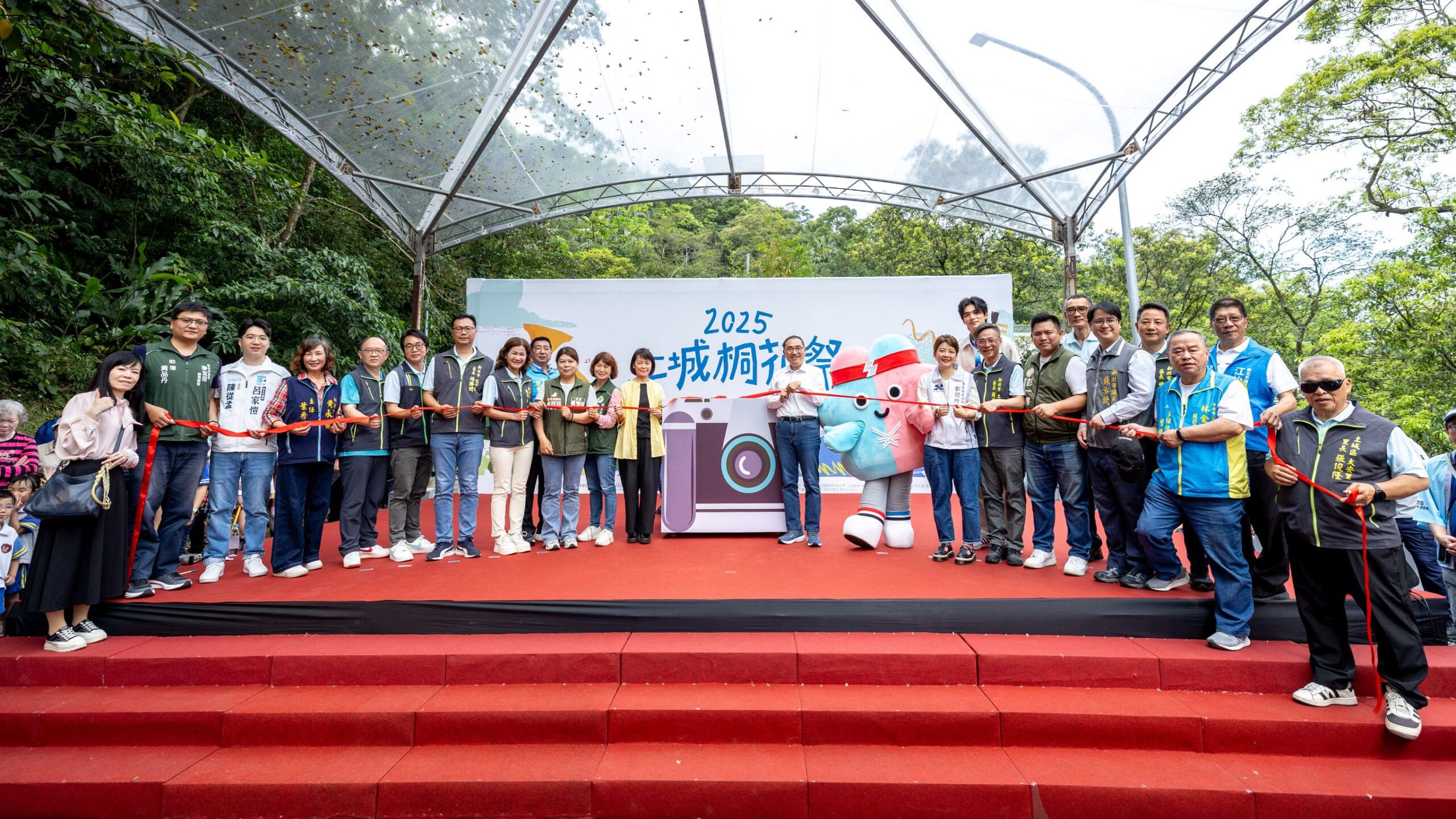 新北市長侯友宜與客家委員會長官、客家事務局長劉冠吟及土城區長周晉平等貴賓啟動拍立得相機,拍下精彩時刻,為活動揭開序幕,邀請大家桐遊新北山林共賞桐花盛景,品嚐客家風味美食,體驗新北在地文化魅力。