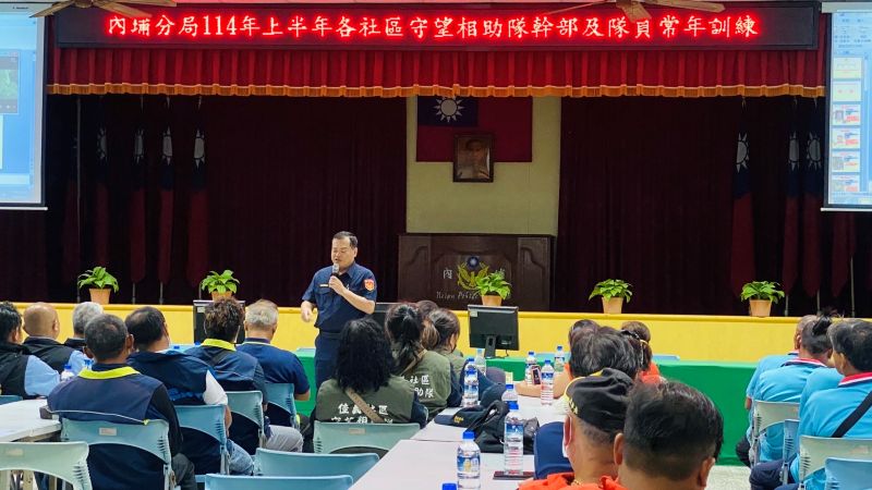 內埔警分局於4月22日召集轄區各社區守望相助隊幹部及隊員,辦理守望相助隊常年訓練課程,本次訓練共招集11個社區守望相助隊,除了提昇社區守望相助隊巡守員治安維護力,充實反詐、增進全民國防力量及災害預防搶救通報等課程外,藉以各守望相助隊齊聚機會彼此交流巡守工作經驗並互換社區守望相助隊執勤功能及技巧,場面熱絡。