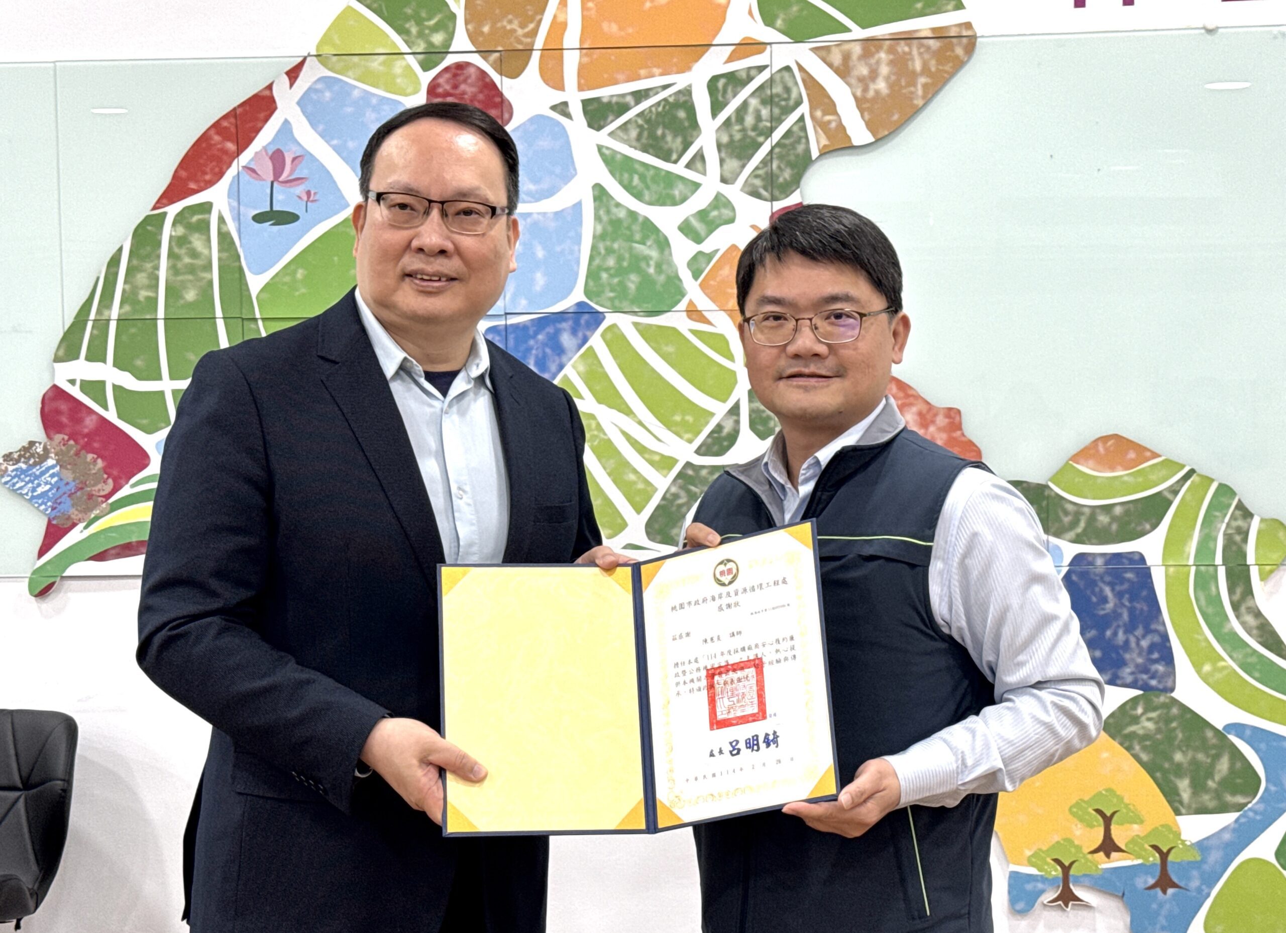 ▲海資處頒發感謝狀給陳憲炎。(圖/桃園市海資處 提供)