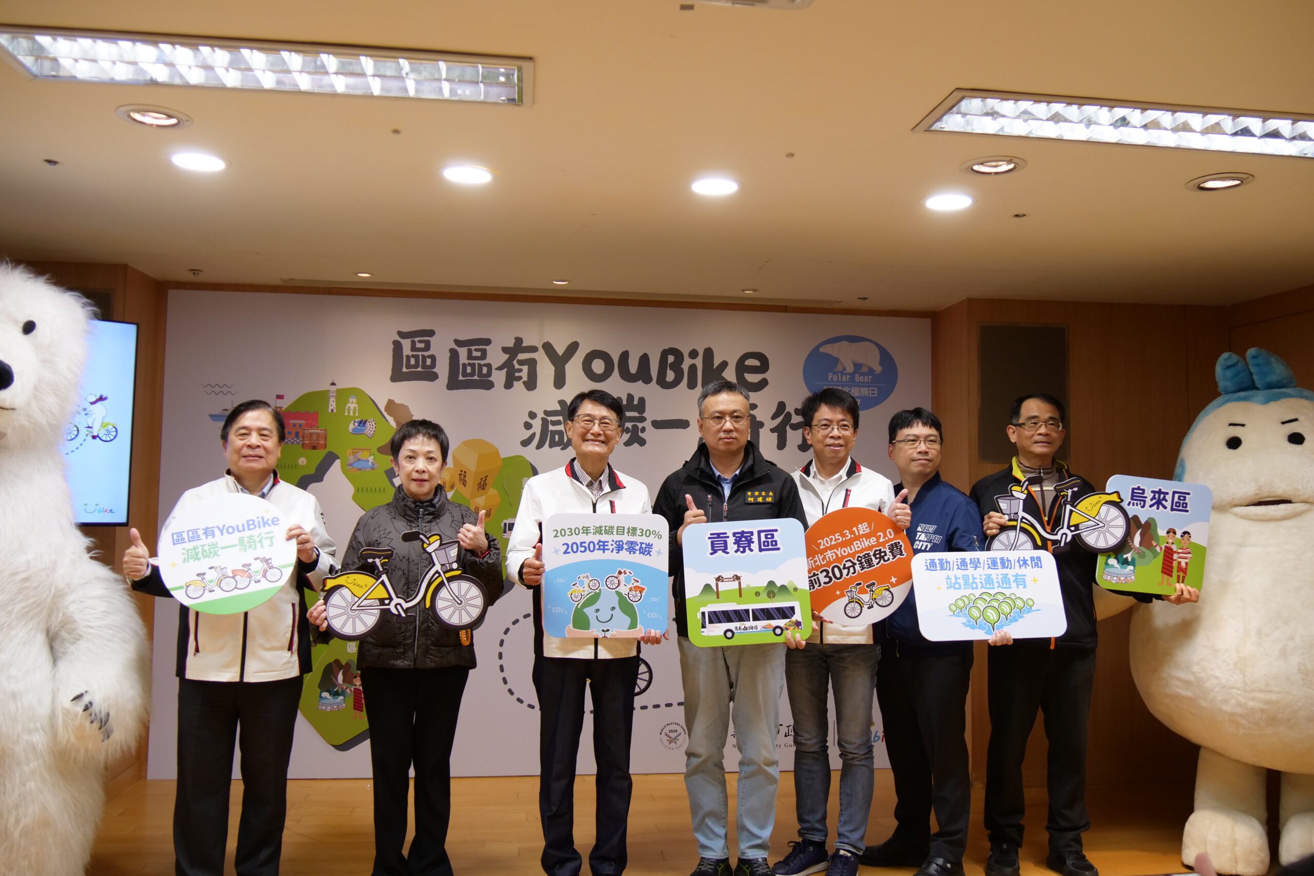 新北市副市長陳純敬今(26日)表示,為落實減碳目標及打造健康樂活城市,新北市YouBike2.0公共自行車系統將自3月1 日起重新啟動前30分鐘免費,同時YouBike租賃站進駐貢寮區及烏來原鄉,達成新北市29個行政區「區區有YouBike」新里程碑。