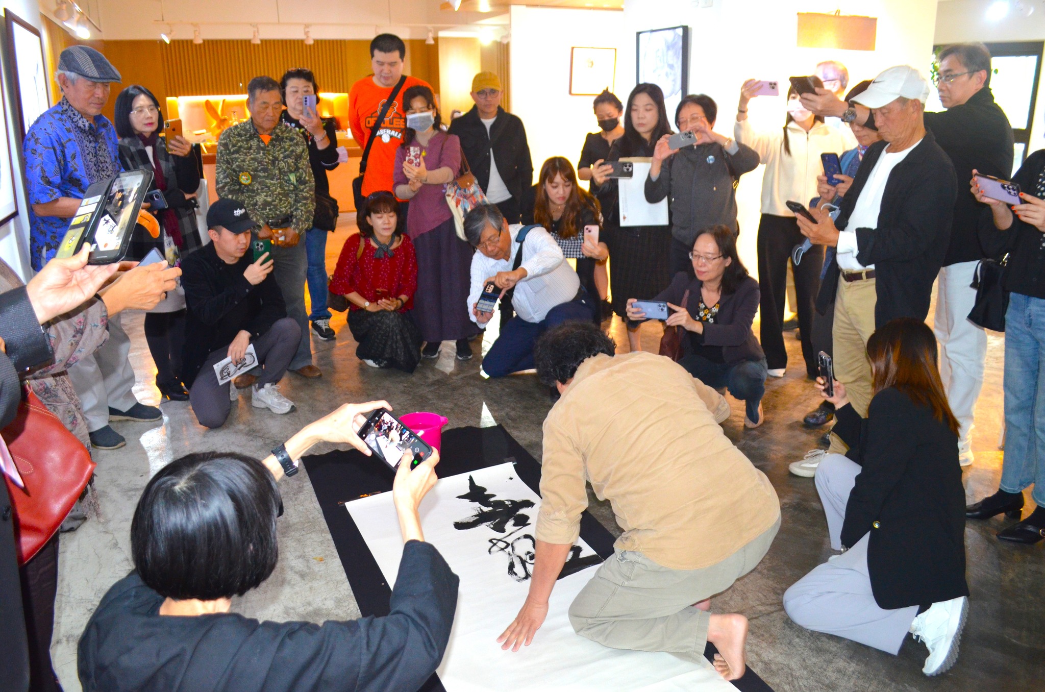幕式中,陳世憲在地上以超大毛筆現場揮毫寫下「從台灣出發」,配合台灣原住民古調歌謠吟唱及羅薇薇老師的銅鑼音聲,陳世憲的「意象書法」更深的創造了書藝在當今台灣的新視界!