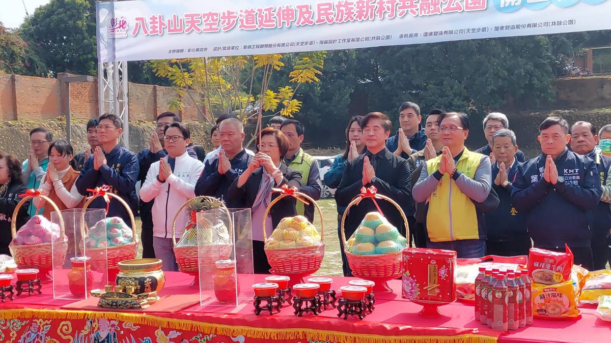 八卦山是彰化鄉親的後花園,為了串聯整體景觀,彰化縣政府辦理天空步道延伸及民族新村共融公園工程,於今(25)日上午在民族新村公園辦理開工祈福典禮,兩項工程合計1.5億元,縣長王惠美、副議長許原龍等各級民代等人與會,共同祈求工程順利進行,希望能夠如期如質完工,吸引更多觀光客,讓城市翻轉,一起來改變彰化。