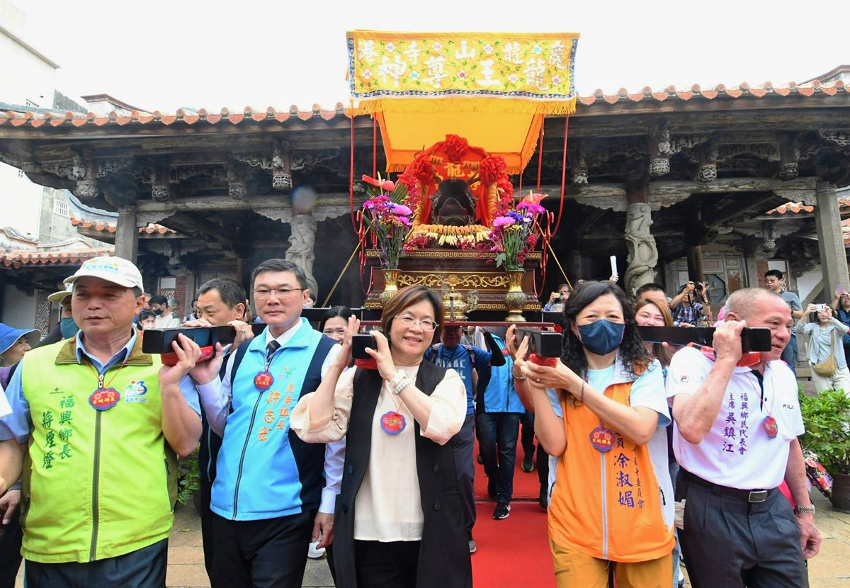 王惠美表示,一年一度迎龍王,這是全國獨一無二結合傳統、藝術、觀光的文化盛事,龍王祭遵循古禮,恭請龍山寺的「龍王尊神」與天后宮的「水仙尊王」聯袂出巡,10艘龍舟也會跟著沿路踩街,再到福鹿溪龍舟賽場地灑淨祈福,期許透過祈福活動,讓端午期間在福鹿溪舉辦的龍舟賽,平安順利圓滿。
