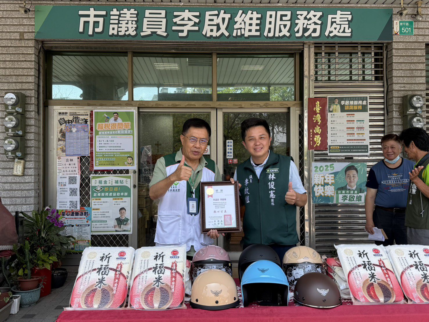 台南市議員李啟維服務處邀集社會善眾及熱心公益企業,捐助逾3噸白米及18萬餘元獎助學金,給南台南家庭扶助中心,30日早上11點在安平區李啟維服務處舉行捐贈儀式,南台南家扶主任李保良、資深社工師林佳雯,代表受贈,李保良說,家扶不只提供服務家庭經濟上的支持,更陪伴孩子走過各項培力計劃的增能歷程,感謝各界支持幫助家扶兒。