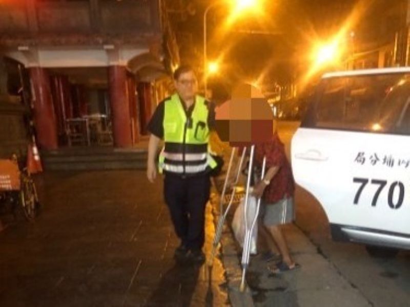 經員警趕赴現場關懷、查詢後得知,一位年逾六旬且身拄拐杖的蔡姓老翁,搭乘最後一班公車到達水門轉運站後,因親友無暇接送,所以自行決定要步行回到鹽埔鄉振興村的家宅,但蔡姓老翁走沒多遠,雙腳已無力,而愁困路旁,幸好被路過的熱心民眾發覺有異而報警,高員等隨即主動護送蔡民回到鹽埔鄉振興村住家,員警助民善舉,深獲民眾讚許。