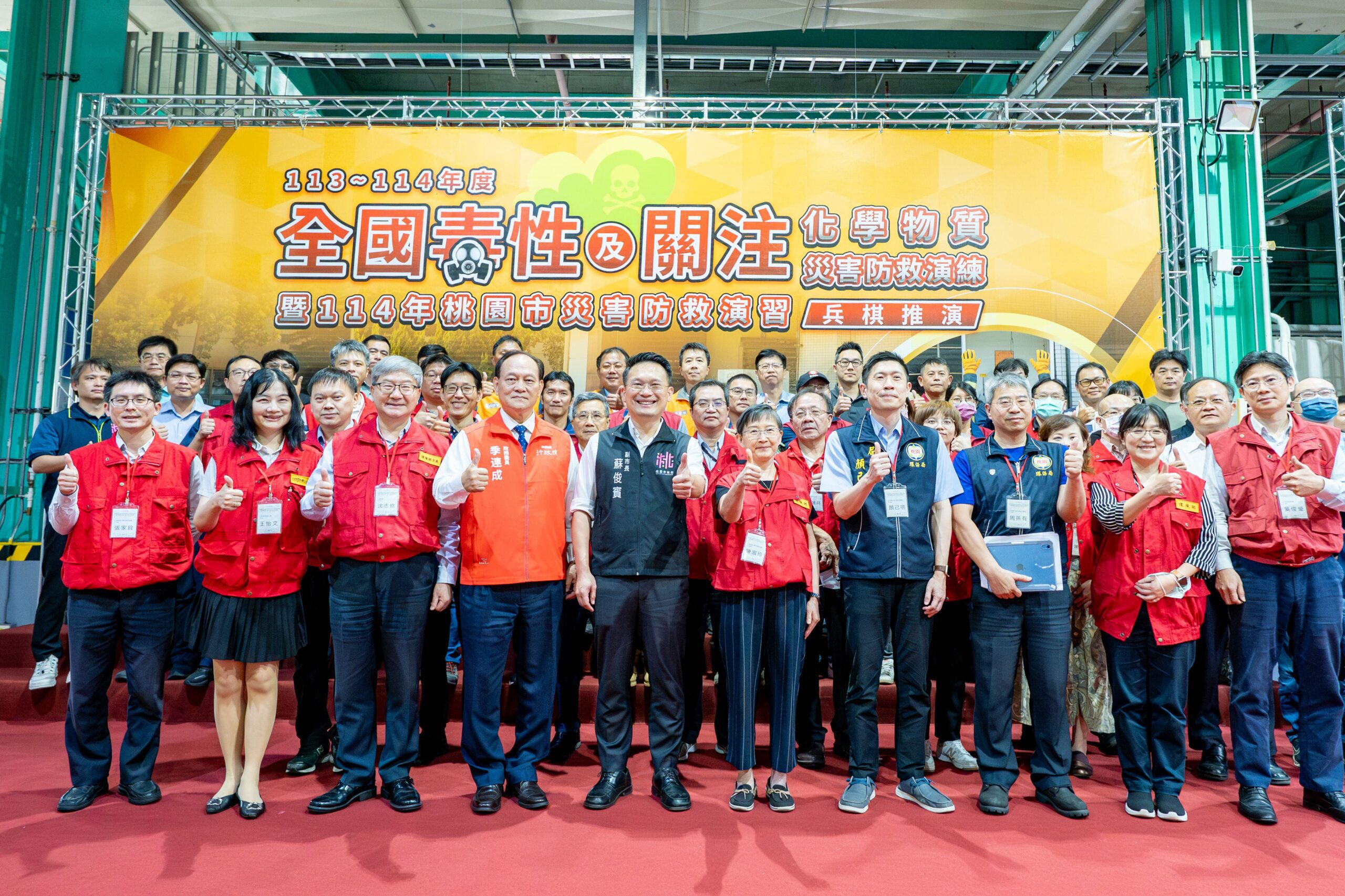 ▲全國毒性及關注化學物質災害防救演練暨桃園市災害防救演習兵棋推演大合影。(圖/桃園市環保局 提供)