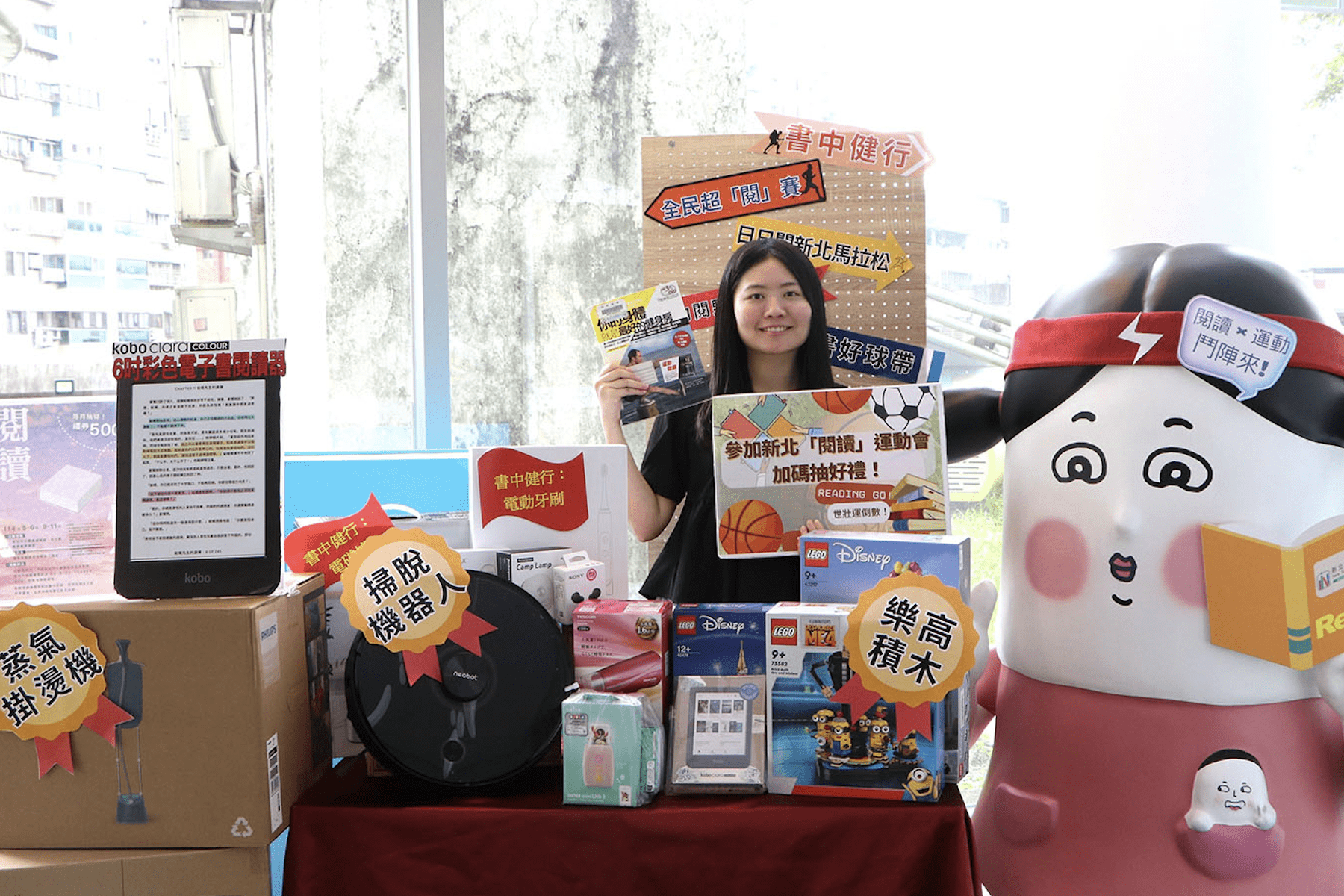 參加新北「閱讀」運動會,好禮加碼抽!即日起至12月底止,只要到新北市立圖書館借書,便有機會可以抽自動掃拖機器人、電子書閱讀器、蒸氣掛燙機、無線藍牙耳機、禮券等好禮。詳細活動資訊及報名方式請至新北市立圖書館網站查詢。