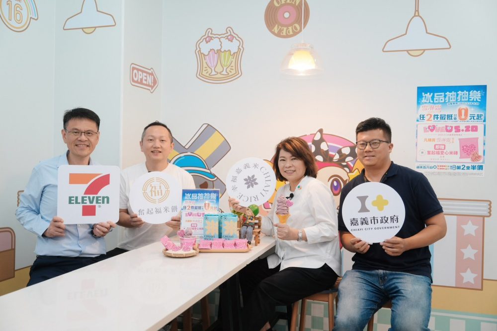 ▲嘉義市政府攜手嘉市好店業者「奮起福米餅」與統一7-ELEVEN共同推出火龍果愛心米磚霜淇淋。(圖/嘉義市政府)
